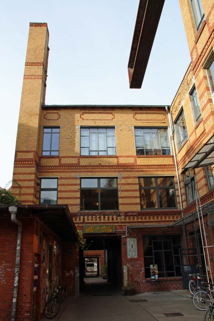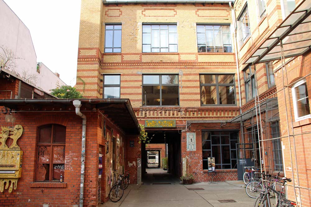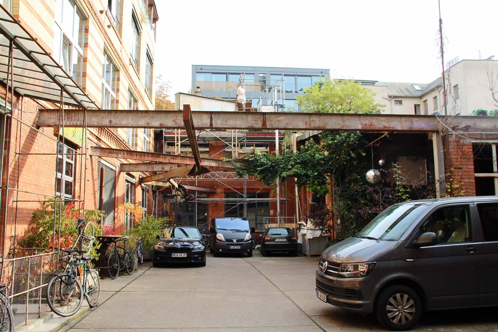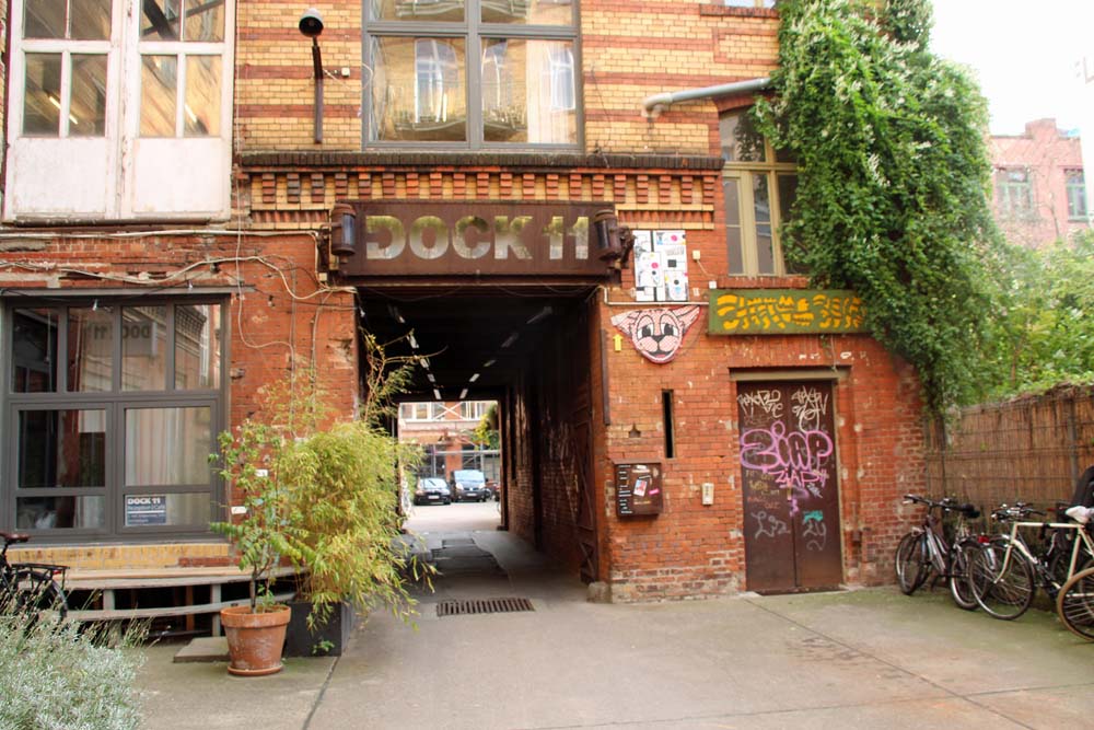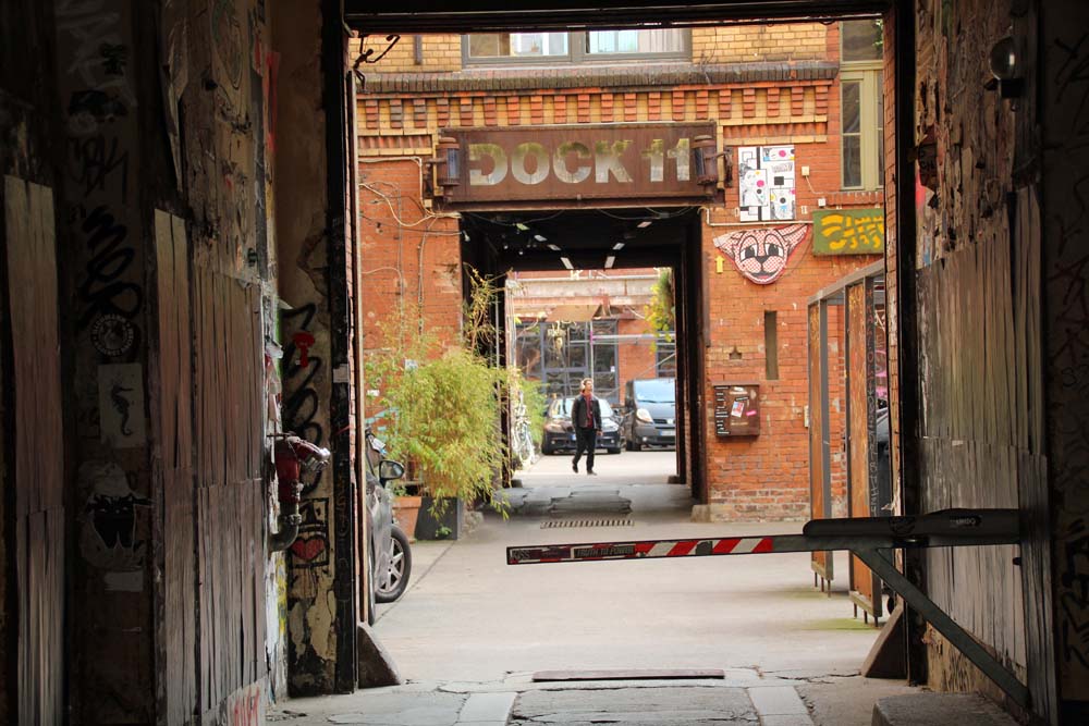 Durch die Toreinfahrt des Hauses Nr. 78 gelange ich in die Hinterhofbebauung und zum Theater „Dock 11“. Das Dock 11 präsentiert seit 1994 in einem alten Fabrikgebäude von 1895 internationale Produktionen in den Bereichen Tanz, Theater, Film, Performance, Literatur, bildende Kunst und Design. Dieses Areal ist ein gutes Beispiel für die in Berlin übliche Hinterhofbebauung. In den Höfen siedelten sich Handwerker und Klein-Gewerbetreibende an.