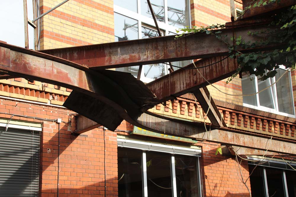 Empfangshalle mit Vorplatz als Parkplatz genutzt.Alter Reichsadlerkopf vom Dach des Empfangsgebäudes. Die Amerikaner entführten den Kopf in die Staaten. Heute steht er auf dem „Eagle Square“ genannten Teil des Vorplatzes vor dem Empfangsgebäude.Fußboden im unteren Teil der EmpfangshalleAbfertigungsschalter in der EmpfangshalleAbfertigungshalleRestaurant oberhalb der Abfertigungshalle mit Blick auf das FlugfeldDer 18 m hohe obere Teil der Empfangshalle wurde nach dem Krieg durch eine Decke abgetrenntKeine Wiederherstellung des oberen Teils nach einem Brand