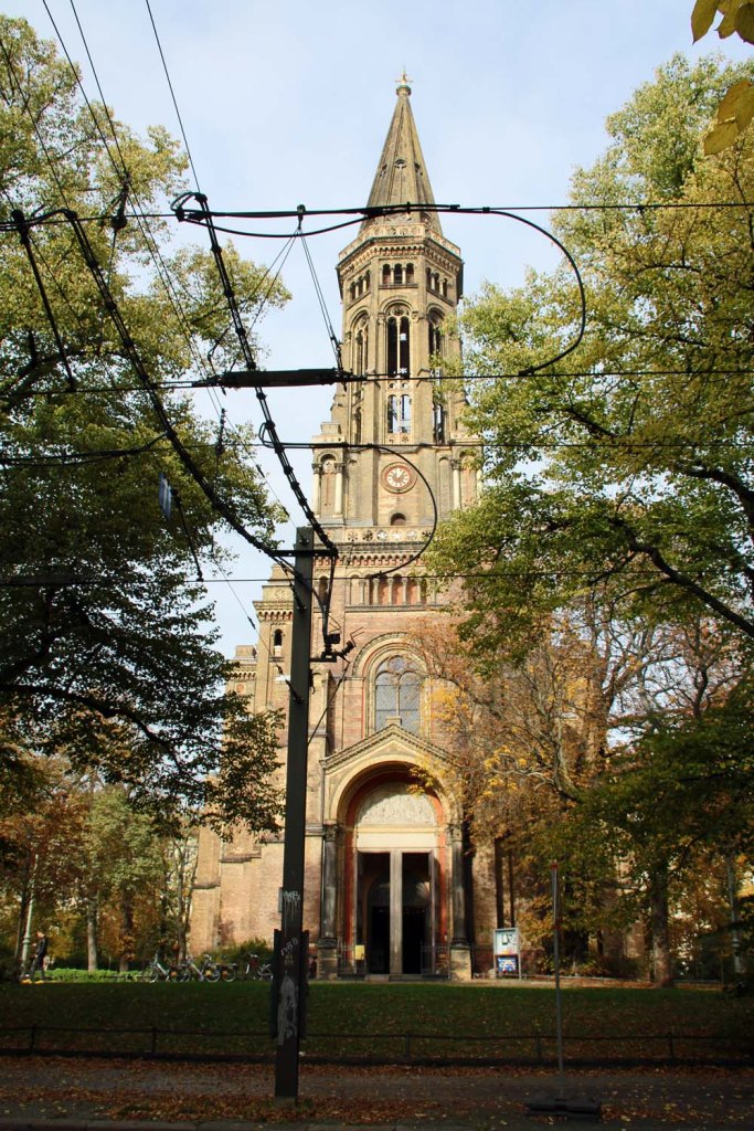Ab der Fehrbellinstraße beginnt dann die Kastanienallee. Von hier aus ist es nur einen Katzensprung entfernt zum Zionskirchplatz und damit zur bekannten Zionskirche. Die 1873 eingeweihte Kirche erlangte Bedeutung als Wirkungsstätte von Dietrich Bonhöfer, der hier als Pastor tätig war. Seit 1986 stellte die Kirche oppositionellen Gruppen die Kellerräume zur Verfügung, die als Bibliotheks-, Veranstaltungs- und Druckerrei genutzt wurden. Weitere Informationen zur Kirche findet Ihr hier und hier zur in den Kellerräumen der Zionskirche angesiedelten Umweltbibliothek.