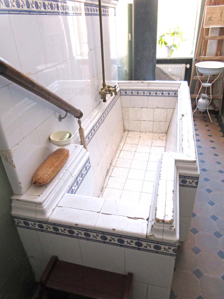 Diese Wohnung hatte ein sehr luxeriöses Badezimmer mit einer fest eingebauten Badewanne und einer Wassertoilette.