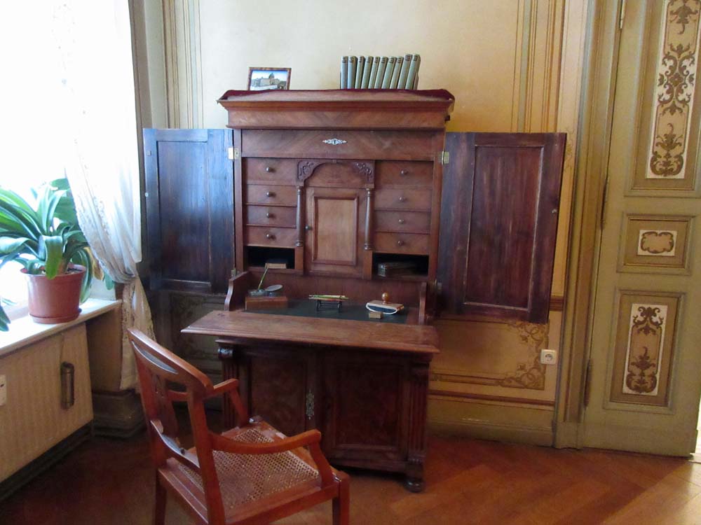 Gleich zu Beginn meines Rundgangs durch die Wohnung bin ich über den Prunk der einzelnen Zimmer dieser Wohnung beeindruckt. Es beginnt mit dem Herrenzimmer, in dem sich die Herren der Schöpfung zu weltbewegenden Gesprächen über Gott und die Welt zurückzogen.