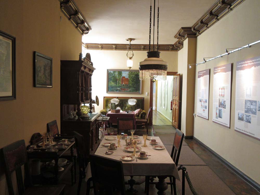 Nun lebe ich schon knapp 20 Jahre in Berlin und entdecke erst jetzt diese Stadt so richtig. Angeregt durch den Besuch des Pankower Museums in der Prenzlauer Allee stoße ich auf zwei Zeugnisse des häuslichen Lebens im Prenzlauer Berg um 1900, die gegensätzlicher kaum sein können. In der Dunckerstraße 77 unweit des Helmholtzplatzes liegt im ersten Stock die Museumswohnung mit der Dauerausstellung „Zimmermeister Brunzel baut ein Haus“, die Lebensverhältnisse der weniger begüterten Einwohner Berlins zeigt. Damit kontrastierend überrascht die Museumswohnung in der Heynstraße, ebenfalls im ersten Stockwerk gelegen, mit dem Prunk der begüterten Schichten.