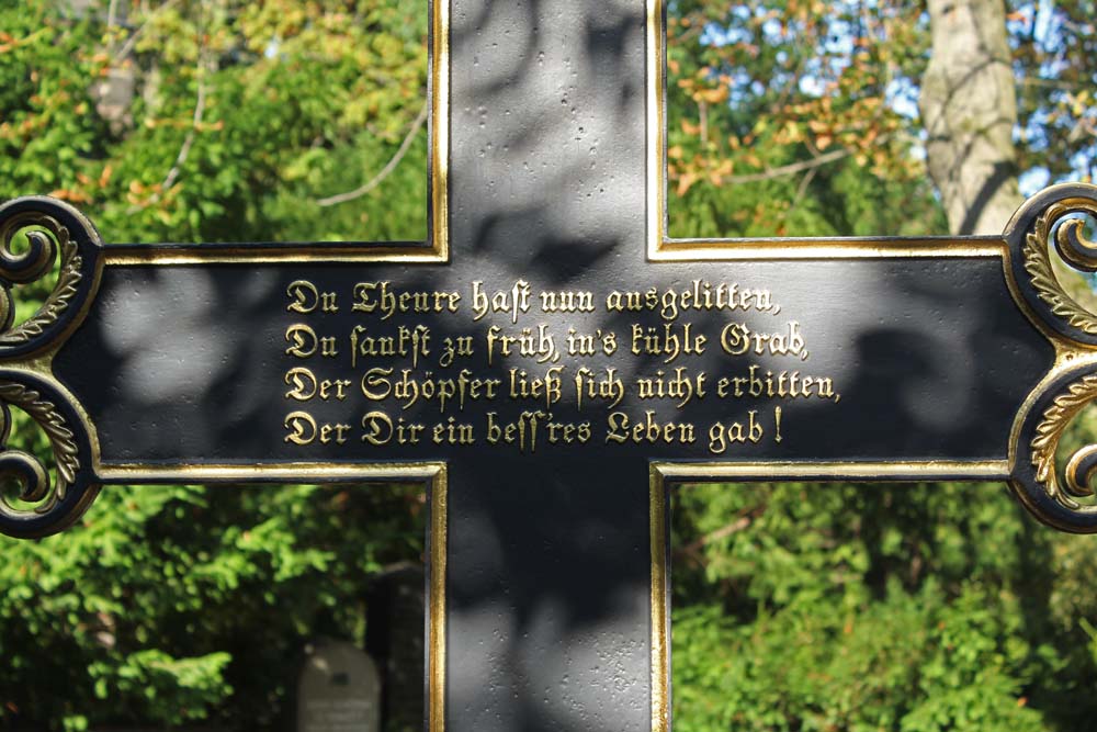 Ich bin fasziniert von Friedhöfen. Friedhöfe empfinde ich als das Spiegelbild unserer Gesellschaft und unseren Umgang mit den Verstorbenen. Auch auf diesem Kirchhof fand ich interessante Grabstätten.