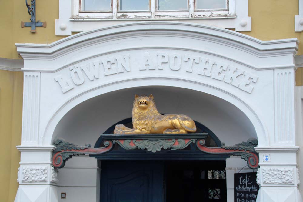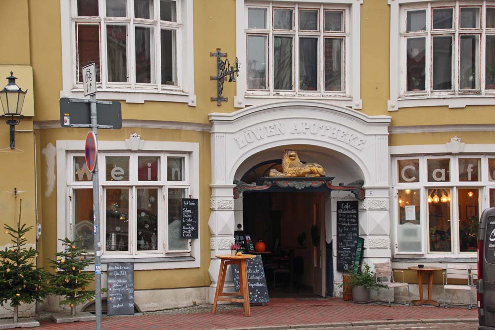 Löwen-Apotheke am SpringbrunnenLöwen Apotheke Hinter dem Rathaus 3Hotel Wismar mit Fischrestaurant/ ehemaliges Clublokal des Kiwanis Club WismarWassertor – Gotisches Hafentor von 1450Alte Stadtmühle WismarGymnasiumAlter SchwedeEhemaliges Brauhaus Konsul Häussler aus dem 14./15. Jh.