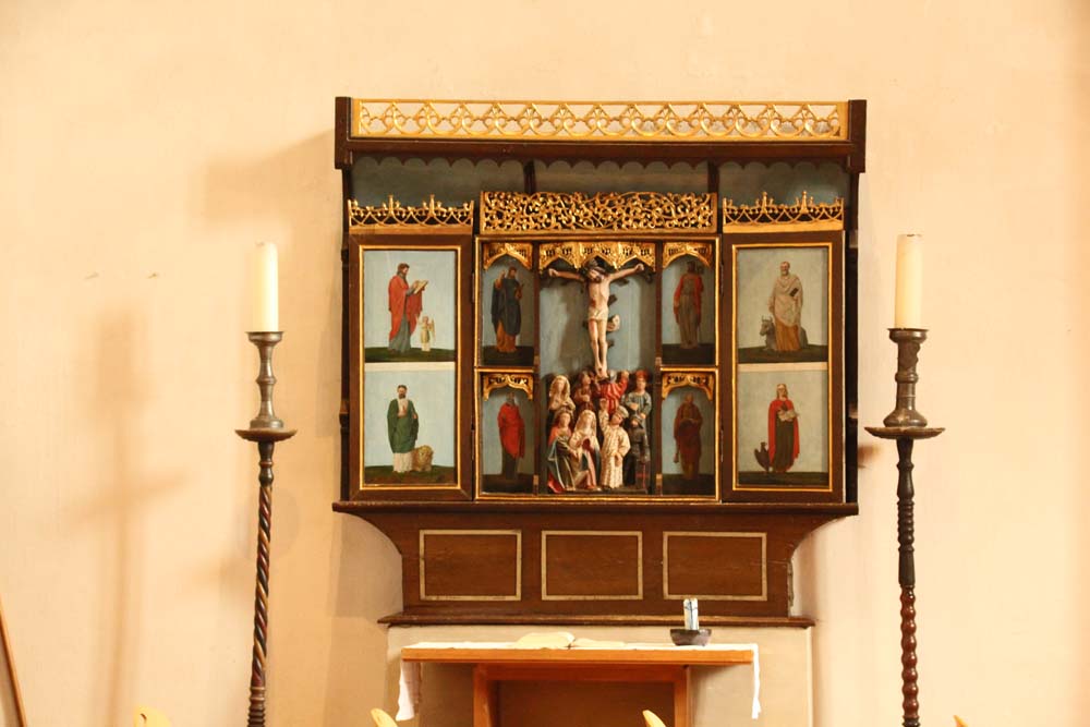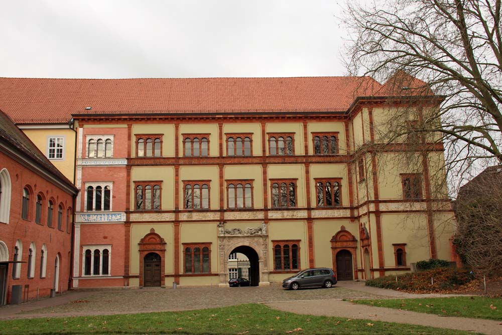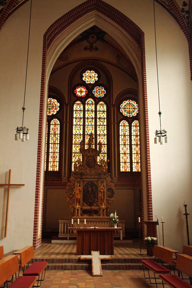 Klosterkirche St. JohannisKreuzrippengewölbeKasten-Chor mit Buntglasfensternbarocker Choraltar Kanzel aus dem 16. Jh. mit Alabasterreliefs verziertOrgel 1990