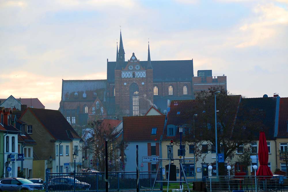 Mit dem Regionalexpress 5 geht es ab Ostkreuz durch Berlin, Brandenburg und Mecklenburg-Vorpommern zur alten Hansestadt an der Wismarer Bucht. War es in Berlin noch trübe mit leichtem Nieselregen überrascht mich die Stadt der norddeutschen Backstein-Gotik mit aufgelockerter Bewölkung. Das Wetter ist an den Küsten eben doch besser!