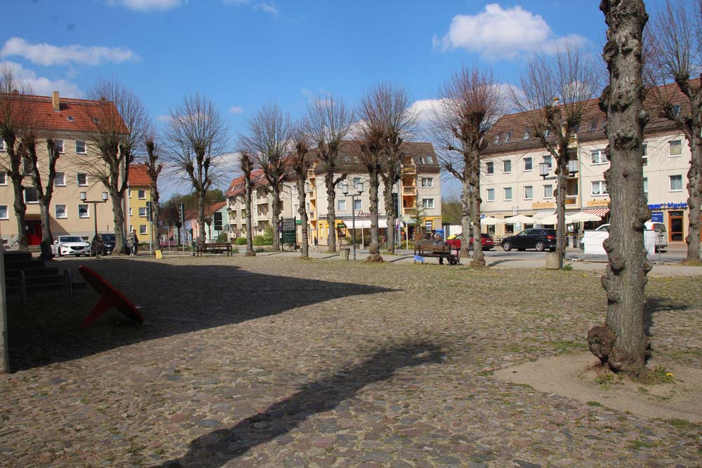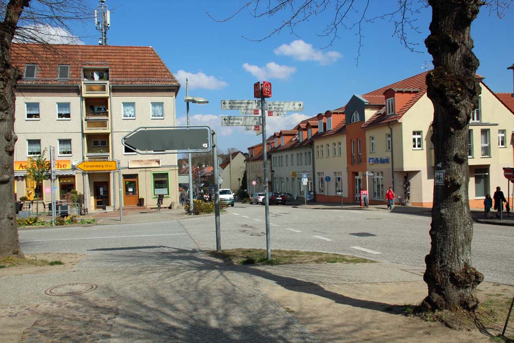 Nach einer 30minütigen Fahrt durch waldreiches Gelände treffen wir am Marktplatz in Lychen ein und ich beginne meinen Rundgang am Rathaus.