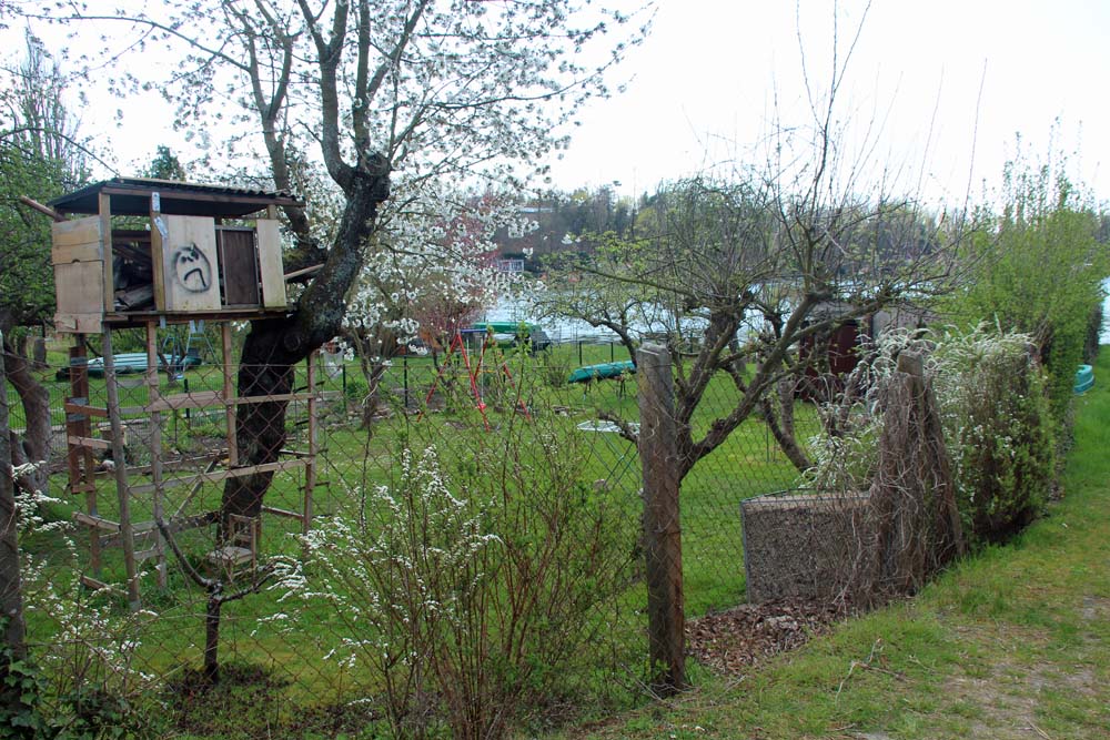 Gartenlaube im Hinterhof, hier spielten die Kinder der Familie Heyn. Heute nutzen die Mieter den Garten.