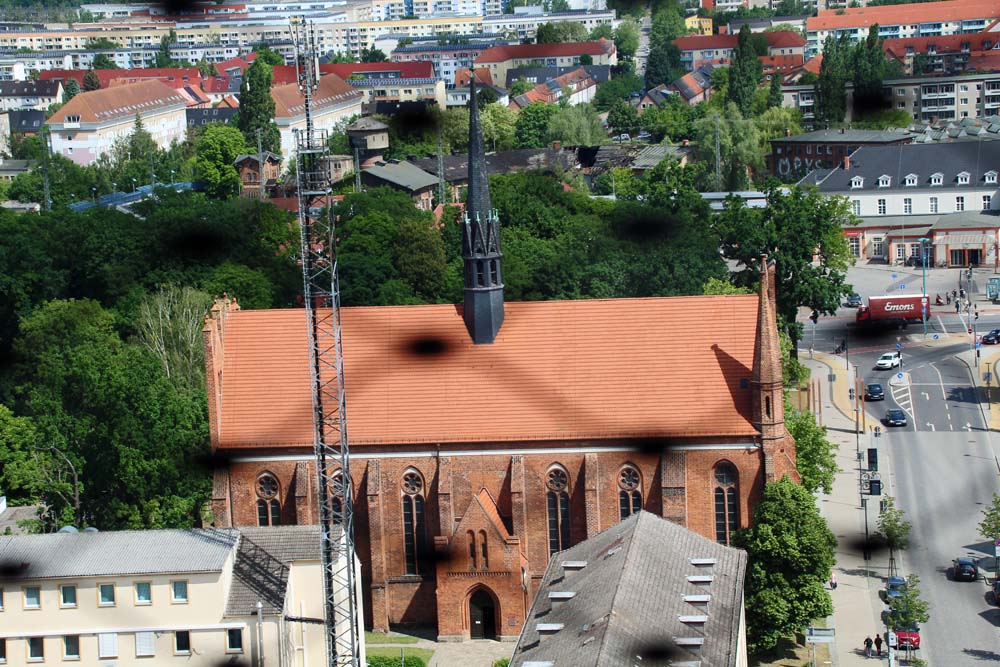 Die Marienkirche gilt seit über sieben Jahrhunderten als das größte und bedeutendste Baudenkmal der Stadt Neubrandenburg. Ihr Ostgiebel zählt zu den kunstvollsten Schöpfungen der Backsteingotik in Norddeutschland. Errichtung der Kirche im 13. Jahrhundert zunächst als Feldsteinquaderbau. Über die Jahrhunderte wurde die Kirche immer wieder Opfer von Stadtbränden und wieder aufgebaut. Ende des Zweiten Weltkrieges versank die Kirche in Schutt und Asche. Nur einige Außenmauern und Teile des Turms blieben stehen. Ab Mitte der 70er Jahre erfolgte der Wiederaufbau. 2001 dann die feierliche Eröffnung der „aufregendsten Konzertkirche Deutschlands“. Leider konnte ich die Konzertkirche nicht besichtigen. War einen Tag zu früh da. Wird auf jeden fall unter Beachtung der entsprechenden Termine nachgeholt.