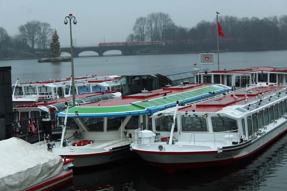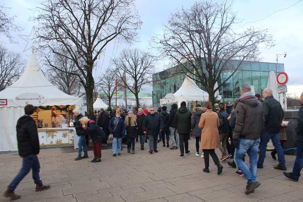 Allmählich meldet sich mein Magen und ich fahre zur Weißen Weihnacht am Jungfernstieg. Weiße Weihnacht deshalb, weil die Zelte weiß sind. Es ist ein Markt des gehobenen Niveaus. Dies gilt sowohl für das Produktangebot als auch für die Besucher – Jungfernstieg eben.