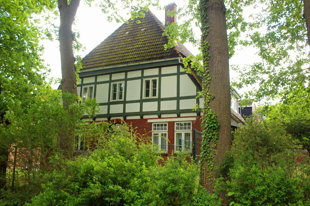 Gestärkt verlasse ich die Innenstadt und mache einen Abstecher in die Walddörfer, genauer gesagt nach Wandsbek-Gartenstadt. Hier hatte meine Schwester mit ihrem Mann und den Töchtern in einer Gartenkollonie gewohnt. Nach dem Krieg war dies mit Blick auf den Wohnungsmangel erlaubt bzw. es wurde geduldert. Dies wurde spätestens in den 70er Jahren des vorigen Jahrhunderts geändert und meine Schwester zog mit ihrem Mann in eine Wohnung. Überraschender Weise existiert die Gartenanlage in unmittelbarer Nähe zum Bundeswehrkrankenhaus unverändert.