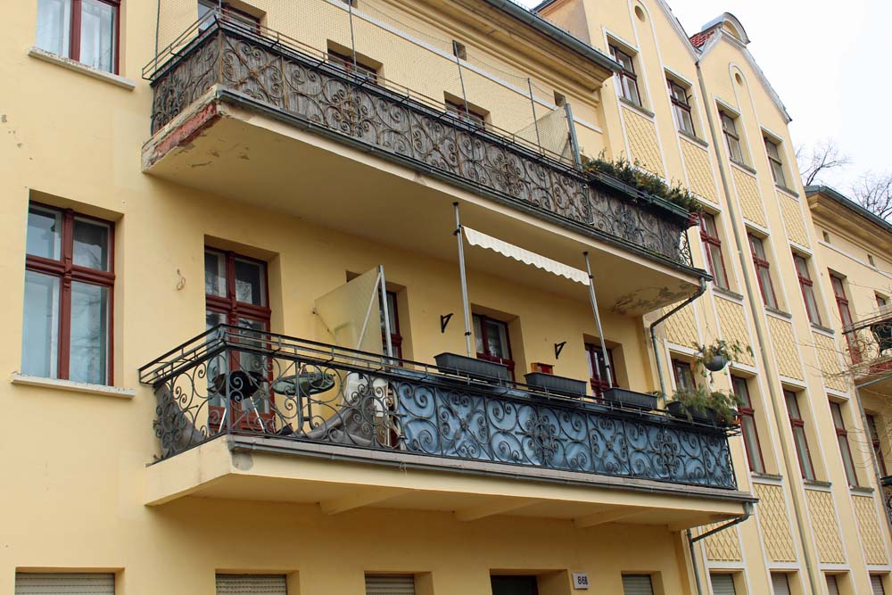 Die Architektur der Gebäude weiter südlich auf der Antoinettenstraße erinnert mich ein wenig an den Stil der Frankfurter Alle (ehemals Stalin Allee) in Berlin.