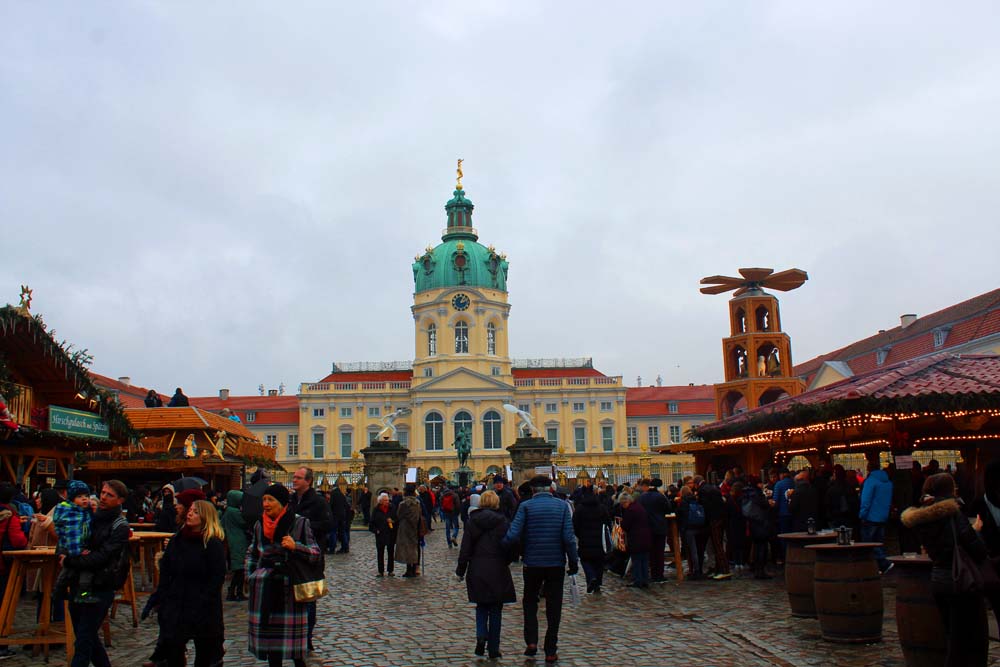 Zum Charlottenburger Schloss gehe ich immer wieder gern. Die Silhouette des Schlosses verleiht diesem Weihnachtsmrkt ein besonderes Flair. Und so entschloss ich ich zum Besuch. Mit der S-Bahn ging es bis Jungfernheide und von dort durch den Schlosspark zum Markt. Gott sei Dank war er noch nicht bevölkert, da er üblicherweise ein beliebtes Touristenziel ist. So schlenderte ich gemütlich an den auch hier festlich geschmückten Ständen entlang, vorbei an Schmuck, Crêpes, Schals, Mützen, geräuchertem Lachs, Bigos, Honig und vielem anderen. Natürlich fehlen auch gegrilltes Fleisch und Bratwürste sowie die Heißgetränke nicht.