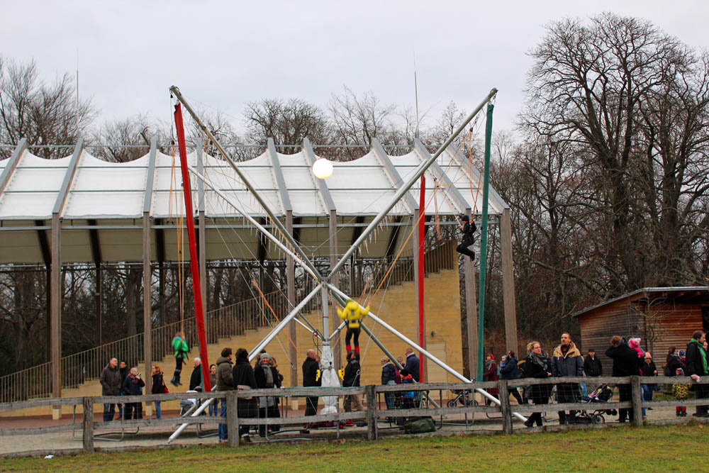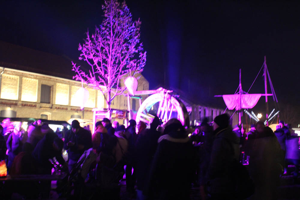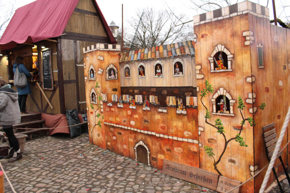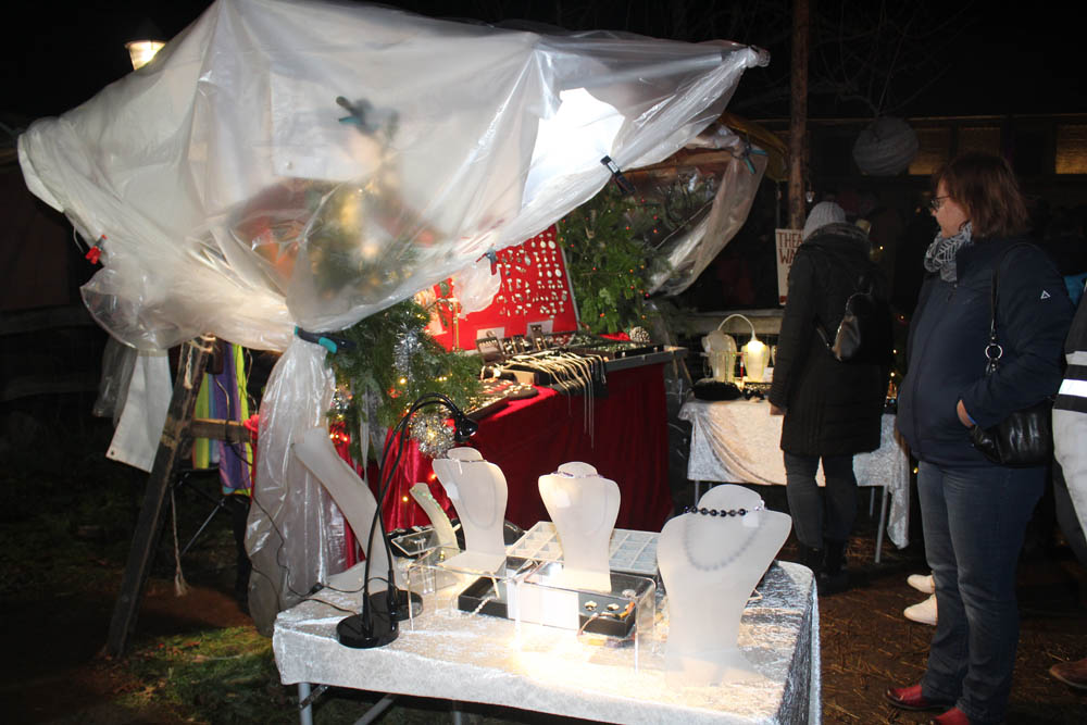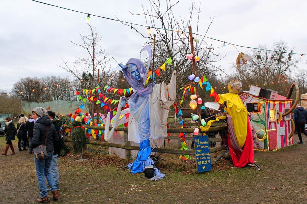 Als ich ankomme beginnt es bereits dunkel zu werden. Der Platz und die über 50 weihnachtlichen Stände strahlen im Lichterglanz. Auch an Aktivitäten wie z.B. Bogenschießen, Ponyreiten, Kinderspiele, ein hölzernes Wasserad ist gedacht.