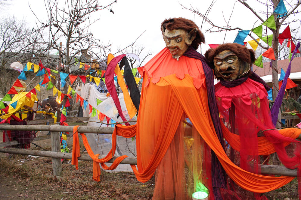 So gestärkt schlendern wir entlang der Stände mit Kunsthandwerk, Keramik, Schmuck und vieles mehr. Auf einer der beiden Bühnen unterhält eine Sängerin die Zuschauer. Wir biegen rechts ab und gelangen in den Märchenpark mit skurrilen Figuren der Märchenwelt.