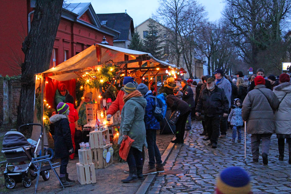 Heute ging es auf den heimatlichen Alt-Kaulsdorfer Weihnachtsmarkt. In dörflicher Ruhe stehen die festlich iluminierten Verkaufsstände rund um die aus dem 13. Jahrhundert stammende Dorfkirche auf dem Dorfanger sowie der Dorfstraße. Auch das Gelände Spiritousenfabrik Schilkin und das Gelände der Johannischen Kirche beherrbergt Stände.