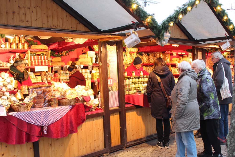 Während ich mich, die vorweihnachtliche Stimmung genießend, mit dem Besucherstrom entlang der Stände mit Keramik, Holzschnitzereien, Wollmützen, Glas und Porzellan und vielen weiteren kunsthandwerklichen Gegenständen treiben lasse umweht mich der Duft von Gebratenem sowie von Glühwein mit und ohne Schuss. Natürlich bleibt es nicht nur beim riechen, es wird auch gegessen und getrunken.